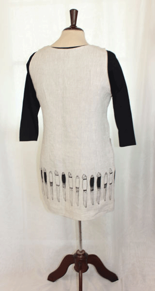 Monikäyttöinen pellavavaate soveltuu arkiseen ja juhlavampaankin menoon. Pellava materiaalina on miellyttävä käyttää ja se pehmenee käytössä. Ruttuisuuttakaan, ei tarvitse pelätä. Välillä voi vaatteen halutessaan silittää käytön välillä ja taas mennään. Tunikassa on kainalossa vetoketju joka helpottaa pukemista. Muotolaskokset tuovat vaatteeseen kaunista istuvuutta. Edessä on iso tasku.